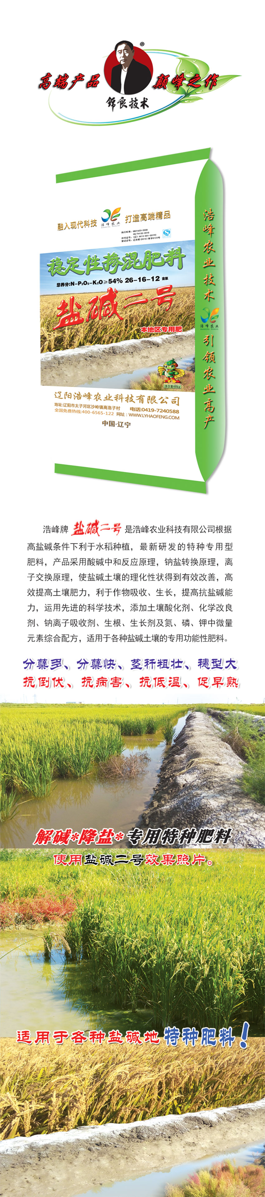 浩峰牌鹽堿二號是浩峰農(nóng)業(yè)科技有限公司根據(jù)高鹽堿條件下利于水稻種植,最新研發(fā)的特種專用型肥料,產(chǎn)品采用酸堿中和反應原理,鈉鹽轉(zhuǎn)換原理,離子交換原理,使鹽堿土壤的理化性狀得到有效改善,高效提高土壤肥力,利于作物吸收、生長,提高抗鹽堿能力,運用先進的科學?,添加土壤藥F?、化学改良剂、脑u胱游占痢⑸?、生长剂及氮、磷、钾中微量元素综簢樹穭Μ室暶釉嶗种盐煎{寥賴淖ㄓ霉δ芐苑柿稀?