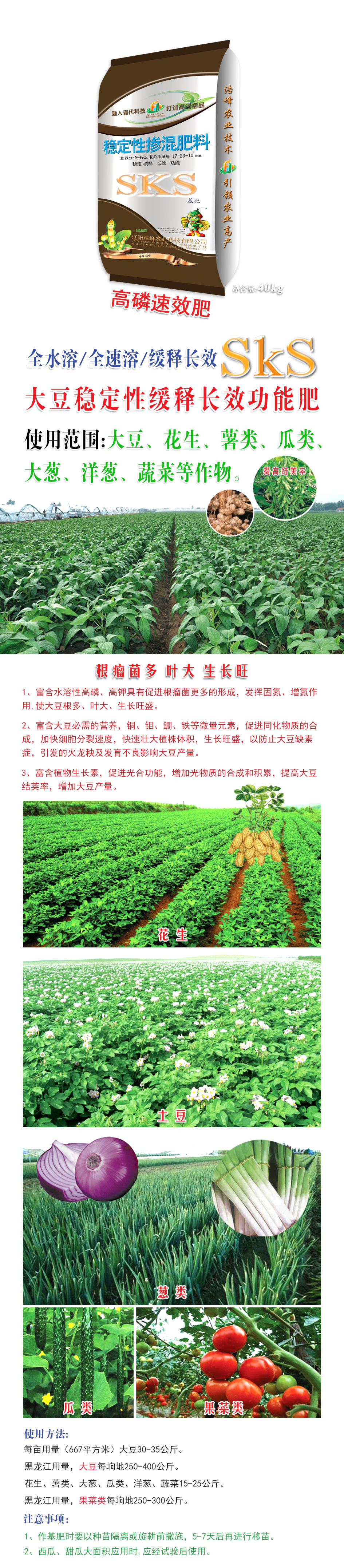 1、富含水溶性高磷、高鉀具有促進(jìn)根瘤菌更多的形成,發(fā)揮固氮、增氮作用,使大豆根多、葉大、生長(zhǎng)旺盛。